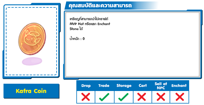 - Costume 1ea แลก Kafra Coin ได้ 5ea