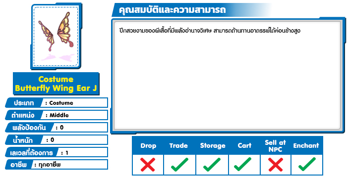 - Costume Butterfly Wing Ear J วัตถุที่ใช้