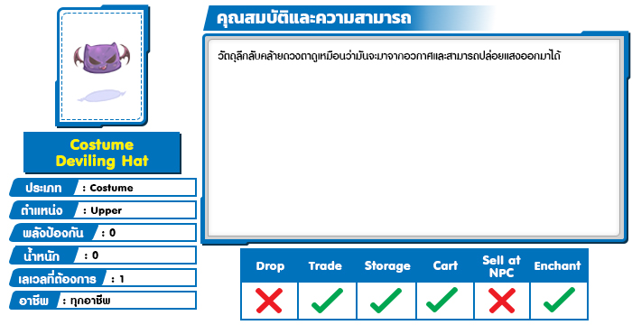 - เมื่อคราฟสำเร็จ Costume เหล่านี้จะยังไม่สามารถนำไป Enchant Stone ได้ (ในอัพเดทเวอร์ชั่นต่อไป)
