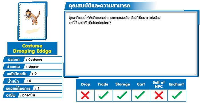 - Costume ที่คราฟจาก Kafra Designer เท่านั้น 1ea