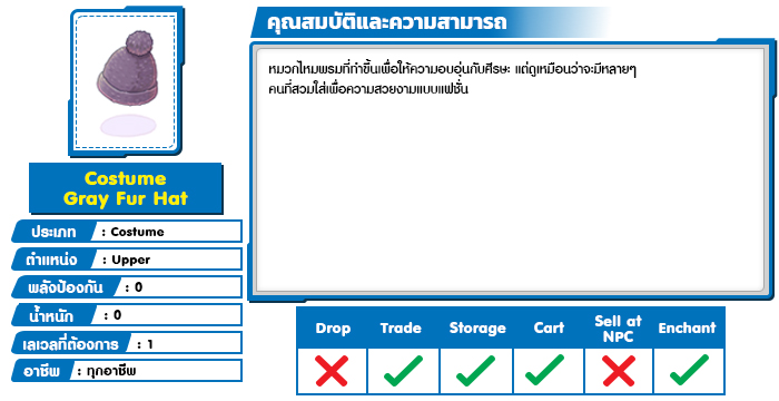 - Costume Gray Fur Hat วัตถุที่ใช้