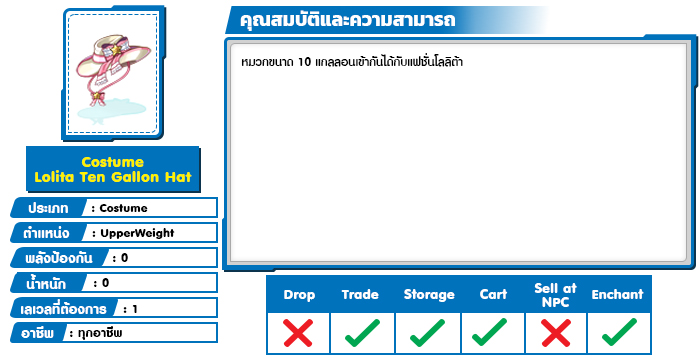 - Costume Lolita Ten Gallon Hat วัตถุที่ใช้