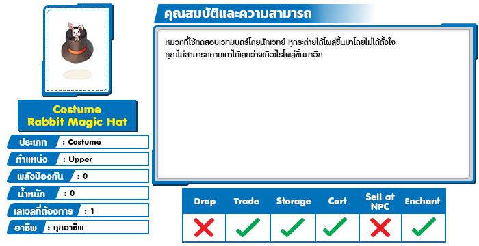 - Costume Rabbit Magic Hat วัตถุที่ใช้