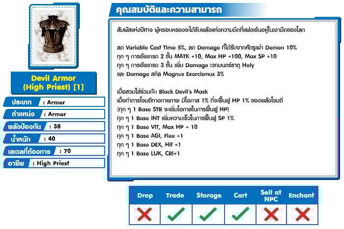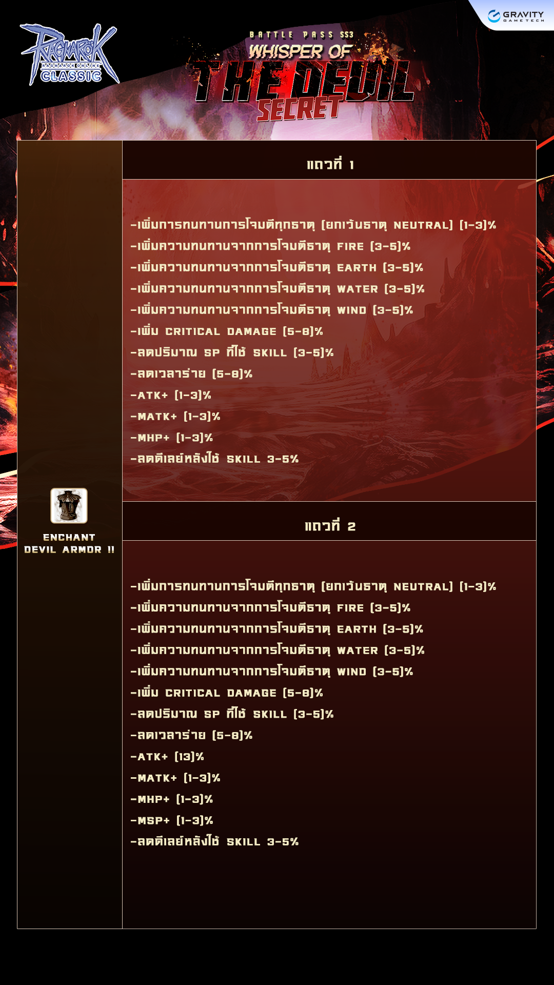 ผู้เล่นสามารถเข้าร่วมดันเจี้ยน Raid Devil Secret ได้ที่ Glast Heim พิกัด 200 91 โดยต้องสร้างผู้เล่นในปาร์ตี้ก่อน