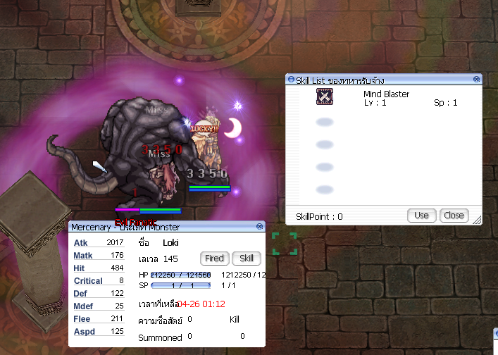 กดคลิกขวาที่ทหารรับจ้าง เลือกสถานะ เพื่อนำสกิลออกมาใช้ใส่บอส ไม่งั้นจะไม่สามารถ ดราเมจเข้าเลย