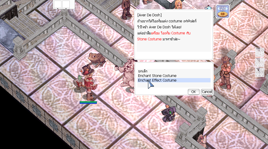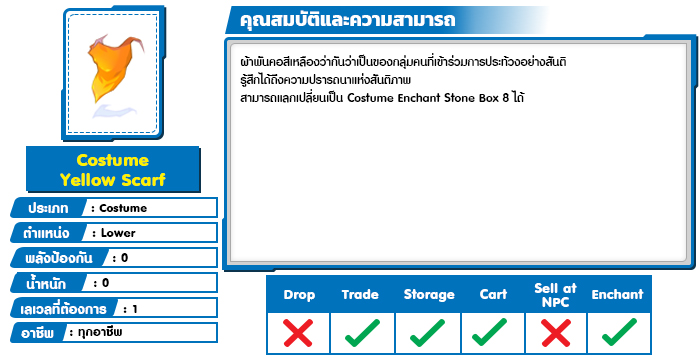 - เหรียญ Guarantee Costume Coin สามารถนำไปแลกเปลี่ยน Costume Fire Muffler และ Stone Effect ได้ที่ NPC Mystery Shop (พิกัด pay_mk 118 77)