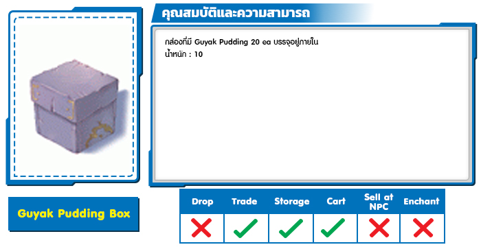 - เมื่อใช้จ่ายสะสมครบ 10,000 Cash Point จะได้รับ Guyak Pudding Box 1 กล่อง